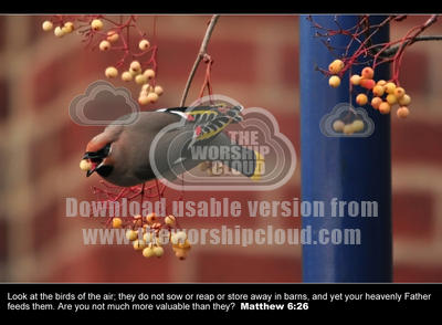 Look at the birds of the air; they do not sow or reap or store away in barns, and yet your heavenly Father feeds them. Are you not much more valuable than they?