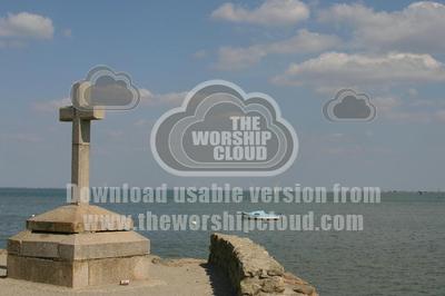 Stone cross at sea's edge