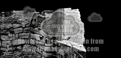 Old farm house, looking through damaged wall