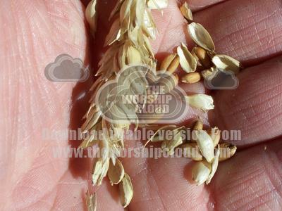 Rubbed ear of wheat in palm of hand.