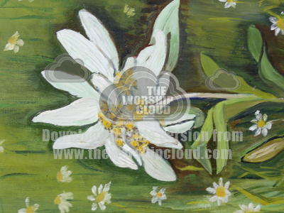 Photographic copy of an oil painting by Audrey Hogan of a close study of and Austrian national flower. The bloom was grown from seed in Audrey's front garden and recorded on canvas in close up.See another painting of the same flowers.