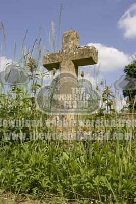 Wildflowers around cross in churchyard Cotswolds, UK
