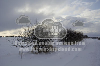 Like alien plants these windswept bushes rise from a thick covering of cold snow