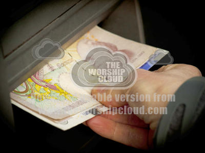 Money being collected as it is issued from a cashpoint