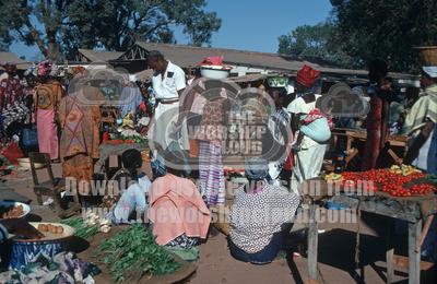 home | resources | woman shopping in busy african market, the gambia