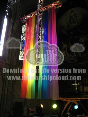 Leeds St Georges Church. The Cross was decorated with the colours and hoisted up during the service.