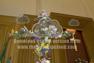 Wooden cross decorated with flowers Bethesda Methodist Church Cheltenham UK