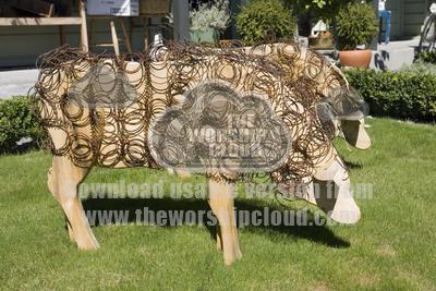 Innovative wooden sheep covered by old chair springs Annie's Country Quilt Store garden Ashburton South Island New Zealand