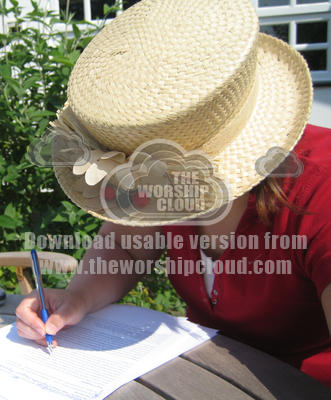 Writer outside in the sunshine with sunhat