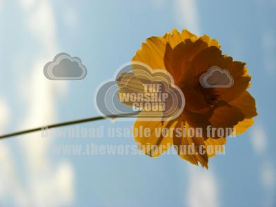 Backlit yellow flower against blue sky Backlit yellow flower leafy background