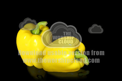 An image of two Yellow Peppers on a black background with reflection. Can be used for Harvest or added to a Harvest PowerPoint.
