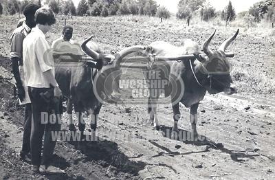 This image of yoked oxen was taken at the Farm Institute, Tororo, Uganda in 1966