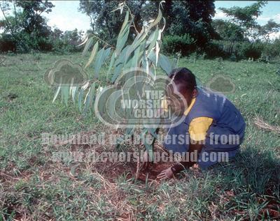 • Young Kenya girl planting tree