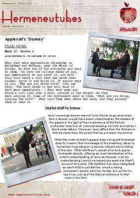 These study notes are designed to spark up lively discussion around Applecart's "Donkey" Hermeneutube.