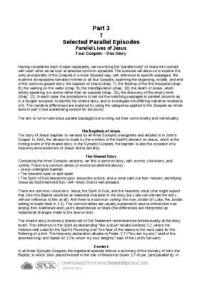 Having considered each Gospel separately, we now bring the “parallel lives” of Jesus into contact