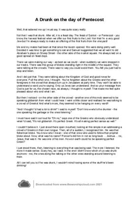 The drunk reflects on what he has seen and heard and concludes he'd rather have been drinking what the Apostles had been.