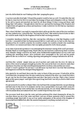 This is one of a number of monologues that I have written for use in worship or some other reflective purpose. This one deals with the events of baptism of Jesus in the River Jordan by John from the point of view of a bystander waiting his turn to be baptised .