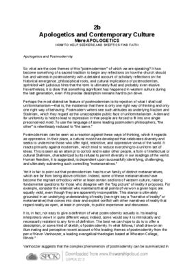 So what are the core themes of this “postmodernism” of which we are speaking? It has become something of a sacred tradition to begin any reflections on how the church should live and witness in postmodernity with a detailed account of scholarly reflections on the historical emergence, philosophical roots, and cultural implications of postmodernism, sprinkled with judicious hints that the term is ultimately fluid and probably even elusive…