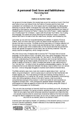 As we saw in the last chapter, the creeds help us put into words our trust in ‘the God and Father of our Lord Jesus Christ, the Father of mercies and the God of all consolation’ (2 Corinthians 1.3). One reason why the creeds begin by talking about believing in God as ‘Father’ is because this is the way of speaking about God and speaking to God used by Jesus of Nazareth. The Gospels emphasize how Jesus of Nazareth spoke of God as his ‘Father’. Indeed, the Lord’s Prayer – widely regarded as a ‘model prayer’ for Christians – opens with the phrase ‘Our Father’. So in using this language, the creeds are simply following the example of Jesus. Christians believe and trust in the same God who was known, obeyed, and revealed by him...