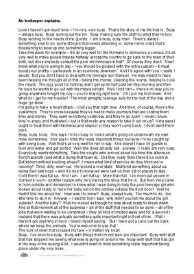 Take this week for example – it’s all very well for the Romans to announce a census, it’s all very well to make people traipse halfway across the country to go back to the town of their birth, but does anybody consult the poor old innkeepers first? Of course they don’t. Now I know what you’re going to say – ‘you should be pleased with the extra custom – it must boost your profits – particularly in an economic downturn.’ And I’d agree with you – really I would. But you don’t have to deal with my teenage son Samuel. He was meant to have been helping me through all of this…
