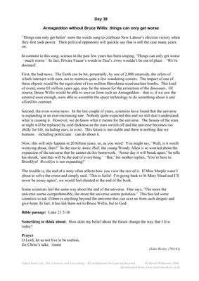 These Meditations are taken from the book 'Life, The Universe And Everything' by David Wilkinson - Click Here