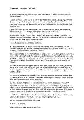 A dramatic monologue in which Peter remembers and reflects on the Ascension and then challenges us.