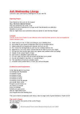 A liturgy for use on Ash Wednesday or as part of Lent worship, with responsive prayer and scope for several voices to be involved.