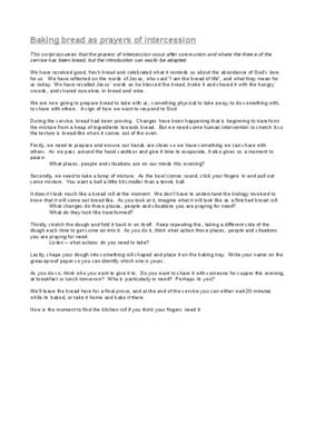 A full script to guide the congregation through kneading bread to pray for others. The bread can be baked at the end of the service so worshippers can take their roll with them and give it away to others