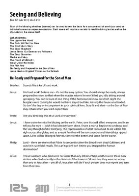 Each of the following sketches (scenes) can be used to form the basis for a complete act of worship or used as individual scenes on separate occasions. Each scene will require a narrator to read the linking text as well as the characters in the scene itself.