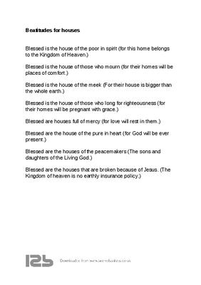 Blessed is the house of the poor in spirit (for this home belongs to the Kingdom of Heaven.)