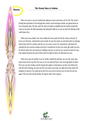 This is a short reading about 3 men, one is a man who avoids the light, one a man who brings it, and one a man who knows it. It is a challange to do effective mission and can be a sketch, a story for the kids, or a challanging reading.