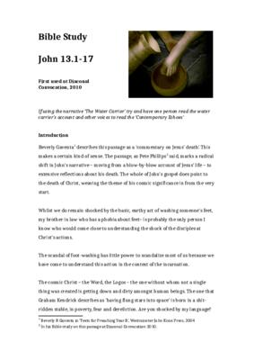 Beverly Gaventa describes this passage as a ‘commentary on Jesus’ death’. This makes a certain kind of sense. The passage, as Pete Phillips said, marks a radical shift in John’s narrative – moving from a blow-by-blow account of Jesus’ life – to extensive reflections about his death. The whole of John’s gospel does point to the death of Christ, weaving the theme of his cosmic significance in from the very start. Whilst we do remain shocked by the basic, earthy act of washing someone’s feet, my brother in law who has a phobia about feet– is probably the only person I know who would come close to understanding the shock of the disciples at Christ’s actions. The scandal of foot-washing has little power to scandalize most of us because we have come to understand this action in the context of the incarnation. The cosmic Christ – the Word, the Logos – the one without whom not a single thing was created is getting down and dirty amongst human beings. The one that Graham Kendrick describes as ‘having flung stars into space’...