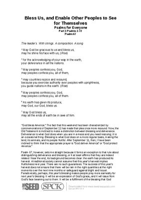 “God bless America.” The fact that this weekend has been characterized by commemorations of September 11 has made that plea once more resound. Now, the Old Testament is inclined to make a distinction between blessing and deliverance. Deliverance is what God does when you are in a mess and you need rescuing; it is an occasional thing. Blessing is what God does on a more regular basis, making the land, its animals, and its people fruitful. After September 11, then, I have been inclined to think that the appropriate prayer is “God deliver America” or “God protect America.”...