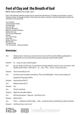 Each of the following sketches (scenes) can be used to form the basis for a complete act of worship or used as individual scenes on separate occasions. Each scene will require a narrator to read the linking text as well as the characters in the scene itself.