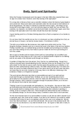 This short reflection/sermon (867 words) explains our spirituality as being confined within a physical body whilst we live here on earth. God, however is not so confined but he uses us to operate in the world. Thus the importance of aligning His will to ours in building his kingdom is seen as very important.