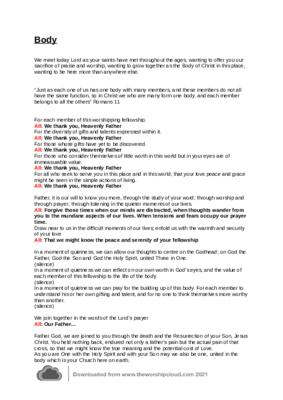 A prayerful liturgy based upon the theme of 'Body' - on one sheet A4 for easy copying