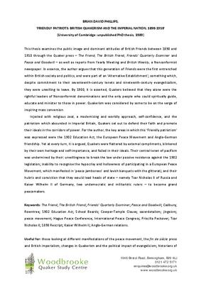 Friendly patriots: British quakerism and the imperial nation, 1890-1910