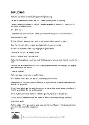 A puppet sketch based upon the parable of the wise and foolish builder