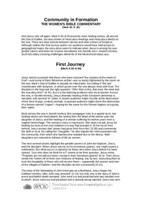 And Jesus sets off again. Mark 4:35–8:26 presents more healing stories, all around the Sea of Galilee, but also stories of miraculous feedings and miraculous deeds on the sea. There are clear echoes between stories and clear echoes of Scripture. Although neither the first-century author nor audience would have had access to geographical maps, the story does seem to indicate when Jesus is among his own people (Jews) and when he crosses boundaries into Gentile (non- Jewish) territory. Such boundary crossing challenges elements of the hierarchical status quo…