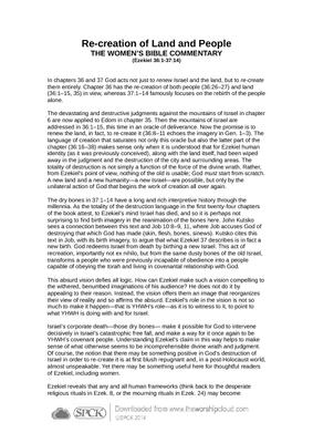 In chapters 36 and 37 God acts not just to renew Israel and the land, but to re-create them entirely. Chapter 36 has the re-creation of both people (36:26–27) and land (36:1–15, 35) in view, whereas 37:1–14 famously focuses on the rebirth of the people alone…