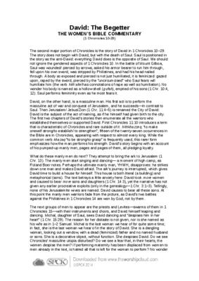The second major portion of Chronicles is the story of David in 1 Chronicles 10–29…