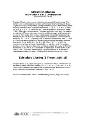 Typically of Pauline letters, moral exhortation (paraenesis) follows theology. The authors have heard that some members are “idle/ disorderly” (atakt?s), not “busy” (ergazomenous), but “busybodies” (periergazomenous) (3:11)…