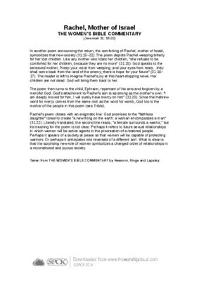 In another poem announcing the return, the comforting of Rachel, mother of Israel, symbolizes that new society (31:15–22)…