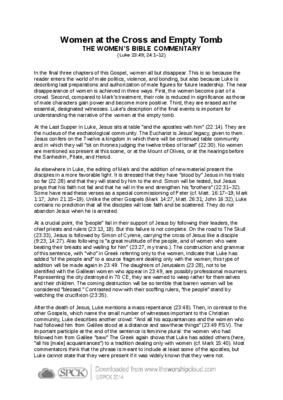 In the final three chapters of this Gospel, women all but disappear. This is so because the reader enters the world of male politics, violence, and bonding, but also because Luke is describing last preparations and authorization of male figures for future leadership. The near disappearance of women is achieved in three ways…