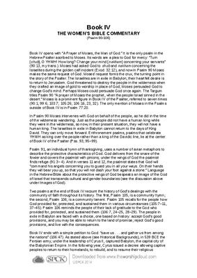 Book IV opens with “A Prayer of Moses, the Man of God.” It is the only psalm in the Hebrew Psalter ascribed to Moses. Its words are a plea to God for mercy: “Turn [shub], O YHWH! How long? Change your mind [nakham] concerning your servants” (90:13, my trans.). Moses had asked God to shub and nakham concerning the Israelites during the golden calf incident (Exod. 32:12), and now in Psalm 90 Moses makes the same request of God. Moses’ request forms the crux, the turning point in the story of the Psalter. The Israelites are in exile in Babylon; their heartfelt desire is to return to Jerusalem. God threatened to destroy the people in the wilderness when they crafted an image of gold to worship in place of God; Moses persuaded God to change God’s mind. Perhaps Moses could persuade God once again. The Targum titles Psalm 90 “A prayer of Moses the prophet, when the people Israel sinned in the desert.” Moses is a prominent figure in Book IV of the Psalter, referred to seven times (90:1; 99:6; 103:7; 105:26; 106:16, 23, 32). The only mention of Moses in the Psalms outside of Book IV is in Psalm 77:20…
