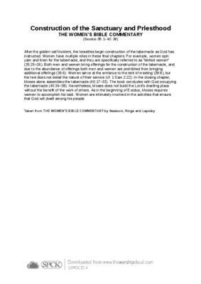 After the golden calf incident, the Israelites begin construction of the tabernacle as God has instructed. Women have multiple roles in these final chapters…