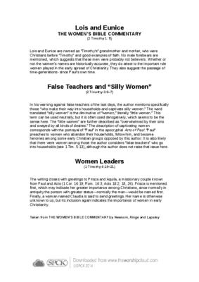 Lois and Eunice are named as “Timothy’s” grandmother and mother, who were Christians before “Timothy” and good examples of faith…