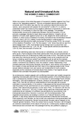 Within the context of his initial discussion of humanity’s rebellion against God, Paul refers to the “degrading passions”: “Women exchanged natural intercourse for unnatural, and in the same way also the men, giving up natural intercourse with women, were consumed with passion for one another” (1:26b–27)…