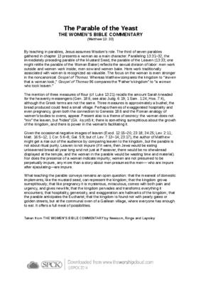 By teaching in parables, Jesus assumes Wisdom’s role. The third of seven parables gathered in chapter 13 presents a woman as a main character. Paralleling 13:31–32, the immediately preceding parable of the Mustard Seed…