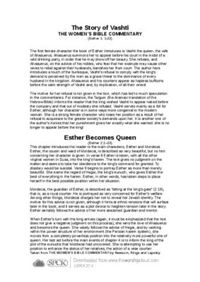 The first female character the book of Esther introduces is Vashti the queen, the wife of Ahasuerus. Ahasuerus summons her to appear before his court in the midst of a wild drinking party, in order that he may show off her beauty…